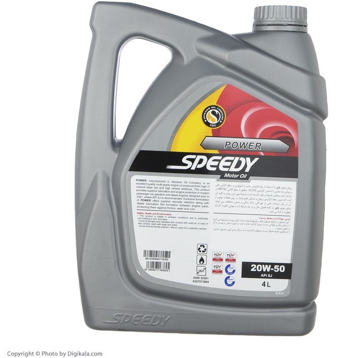 روغن موتور اسپیدی پاور در برابر رسوبات و آلودگی ها مقاوم است و میزان آسیب های احتمالی را به حداقل می رساند. همچنین در کاهش صدا و کارکرد موتور نقش مؤثری دارد. این روغن دارای گرید 20W50 و سطح کیفی SJ می باشد.